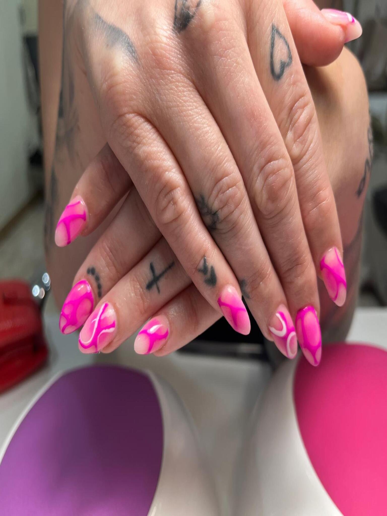 Tratamiento cosmético en el que se da la forma deseada a las uñas de las manos, y se maquillan con un esmalte